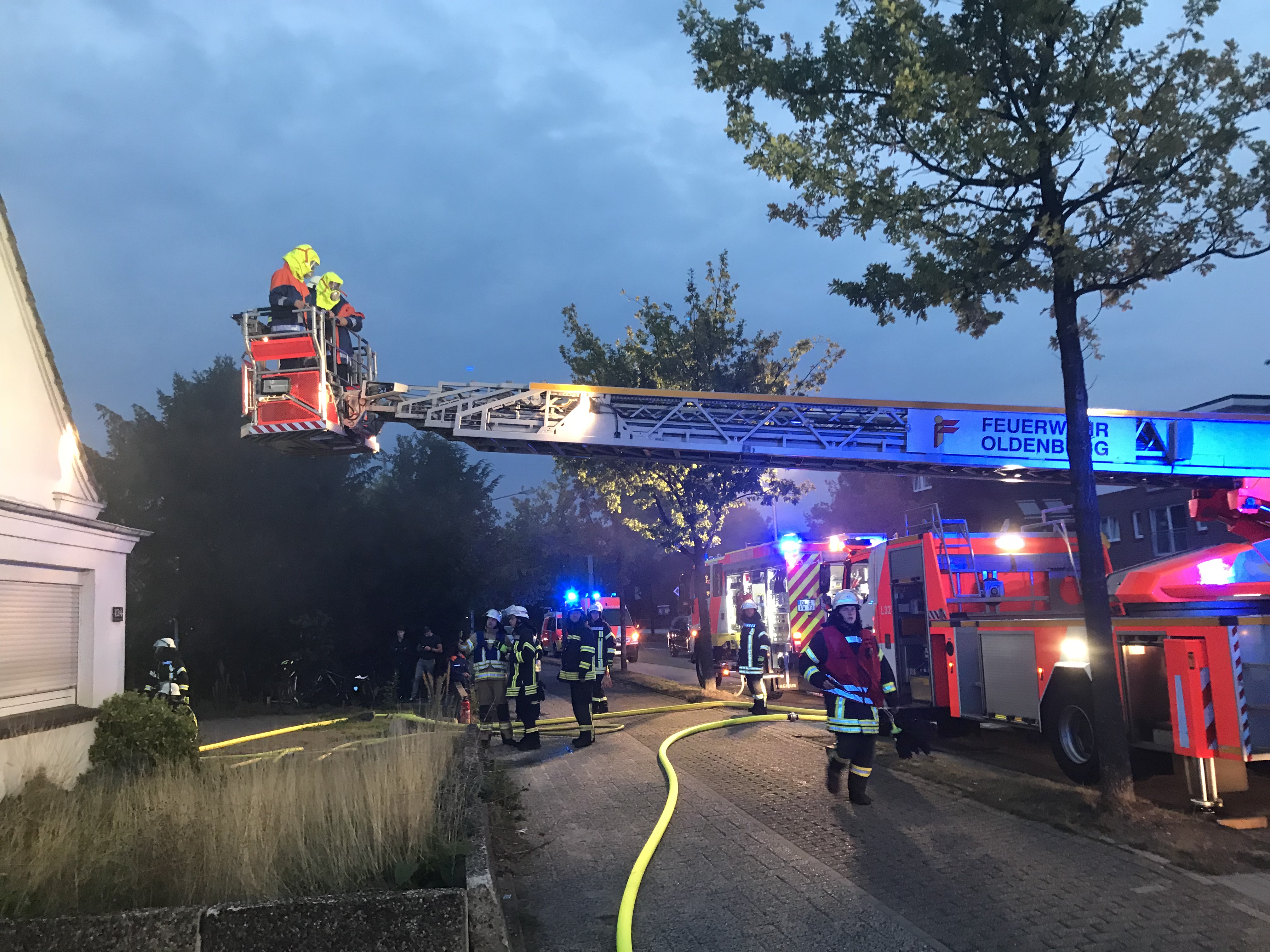 Diesen probten die Kameraden der Freiwilligen Feuerwehren Eversten, Stadtmitte und Osternburg in einem unbewohnten Haus in Eversten, welches kurz vor dem Abbruch steht. Eine große Herausforderung für die Kameraden der Oldenburger Feuerwehren, die dieses Szenario zügig abarbeiteten. „Die Übung ist sehr gut verlaufen“, resümierte Einsatzleiter und stellv. Stadtbrandmeister Mirko Mennrich. „Es gibt immer kleinere Details zu verbessern, dafür werden wir die Übung im Nachgang aufarbeiten.“ An der realistischen Einsatzübung beteiligten sich rund 25 Feuerwehrkameraden mit fünf Fahrzeugen.