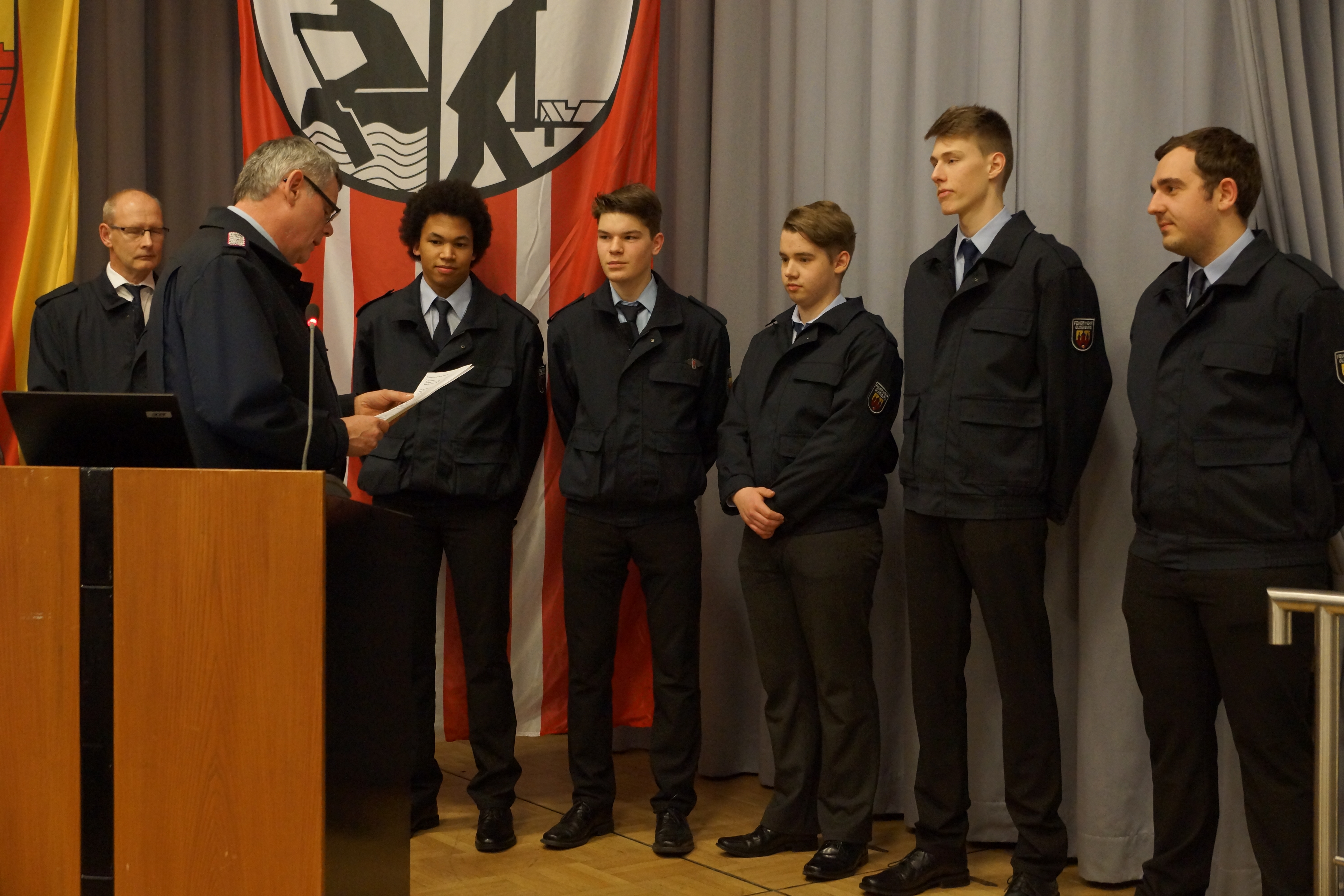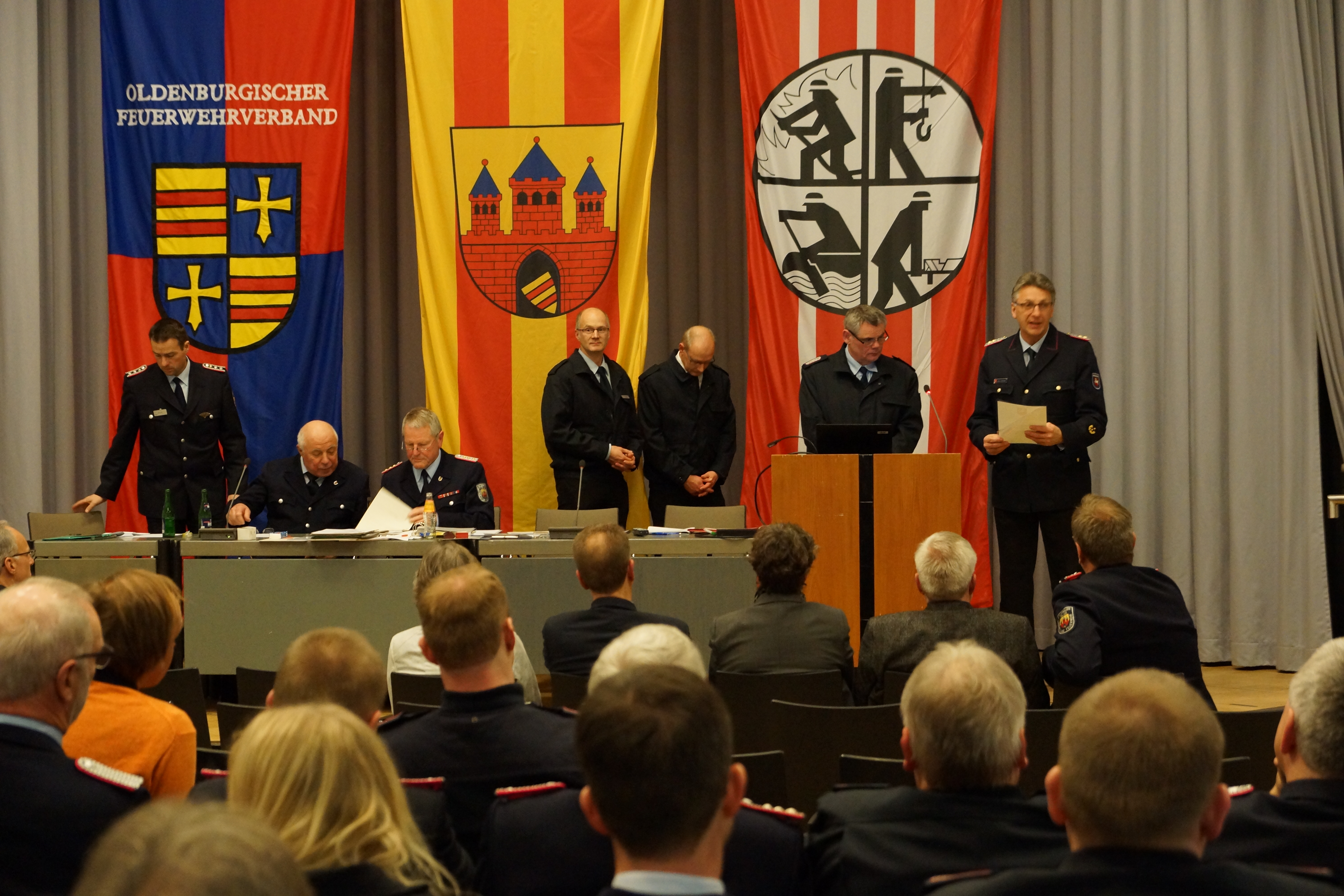 Stadt Oldenburg – Der Verbandsvorsitzende André Heitkamp begrüßte die Gäste und Mitglieder des Stadtfeuerwehrverbandes Oldenburg auf der Mitgliederversammlung am 27. März 2019 im PFL und begann mit dem Tätigkeitsbericht des Vorstandes. Als Vertreterin der Stadt Oldenburg würdigte die Erste Stadträtin Silke Meyn in einem Grußwort die Arbeit der Feuerwehr Oldenburg und informierte die Anwesenden unter anderem über die Arbeit der im letzten Jahr eingerichteten Strukturkommission, unter Vorsitz des Innenministeriums, zur Sicherstellung des Brandschutzes in Niedersachsen für die nächsten 10 bis 20 Jahre, an der auch Vertreter der Feuerwehr Oldenburg beteiligt waren. Der stellvertretende Stadtbrandmeister Mirko Mennrich stellte im Rahmen eines Tagungsreferates ein Verfahren zur mobilen Schadensmeldung bei flächenhaften Sonderlagen vor. In einem gemeinsamen Projekt mit der Feuerwehr Oldenburg und der Großleitstelle hat die BTC AG ein Verfahren entwickelt, dass zur Entlastung der Leitstellen und zur Freihaltung der begrenzt verfügbaren Notrufleitungen für echte Notrufe beitragen kann.  Im weiteren Verlauf der Versammlung wurden verdienter Feuerwehrleute geehrt und befördert.
